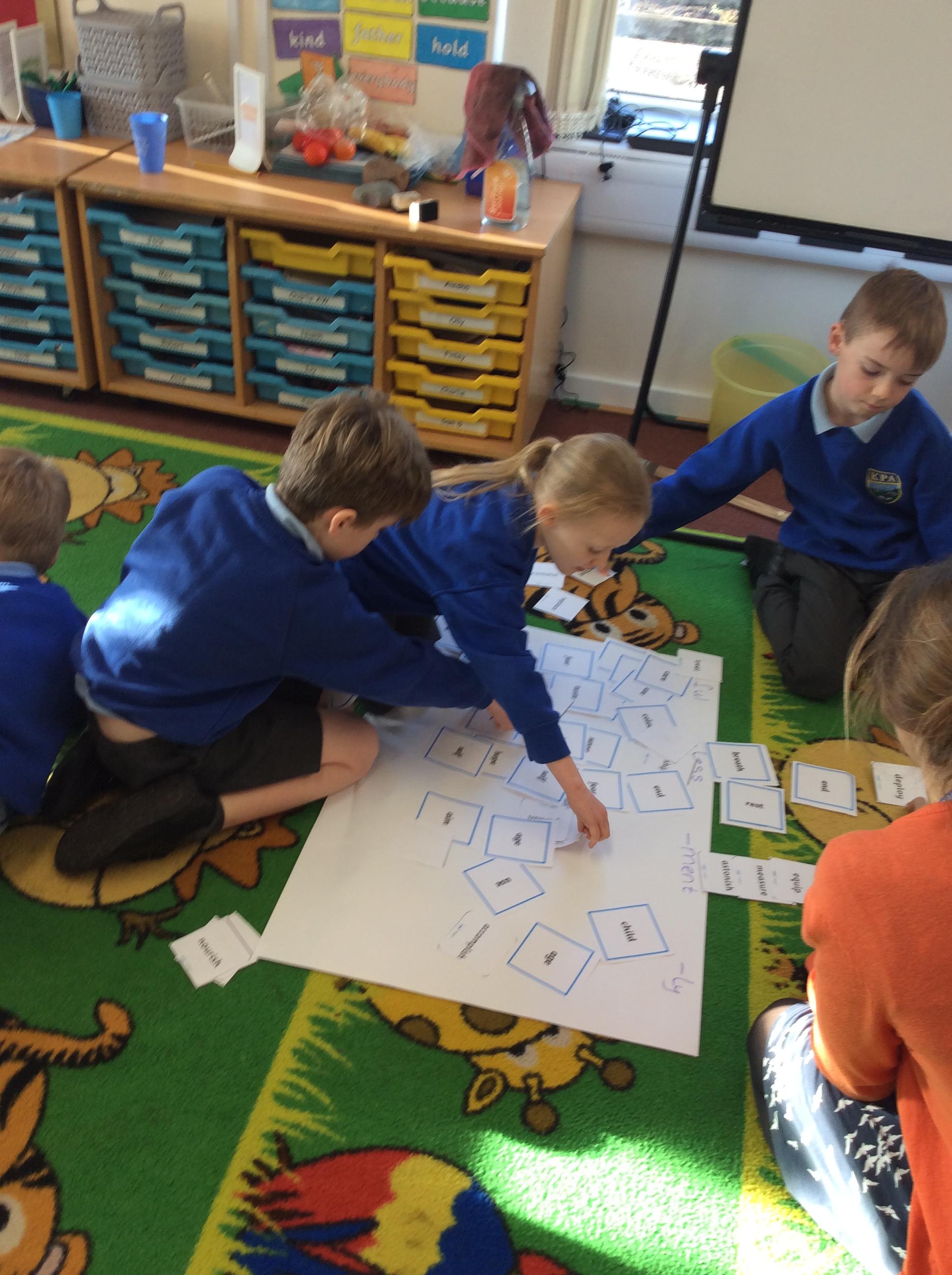 In English, we have recapped prior learning SPaG and learnt about new ideas. We all looked at homophones and working hard to choose the correct spelling. We played games of homophone snap and used the pictures to help work out which spelling matched which meaning. YR2 have learnt about how to use apostrophes for possession and contractions, using fly swatters to match the corrected contractions and non-contracted phrases. YR3 looked at word families and how to change a word using a prefix or suffix. We have also used a spelling carousel to help learn and practice some of the trickier spelling rules e.g. using -le or -el, the 'j' sound written as -ge or -dge and making plurals with ies.