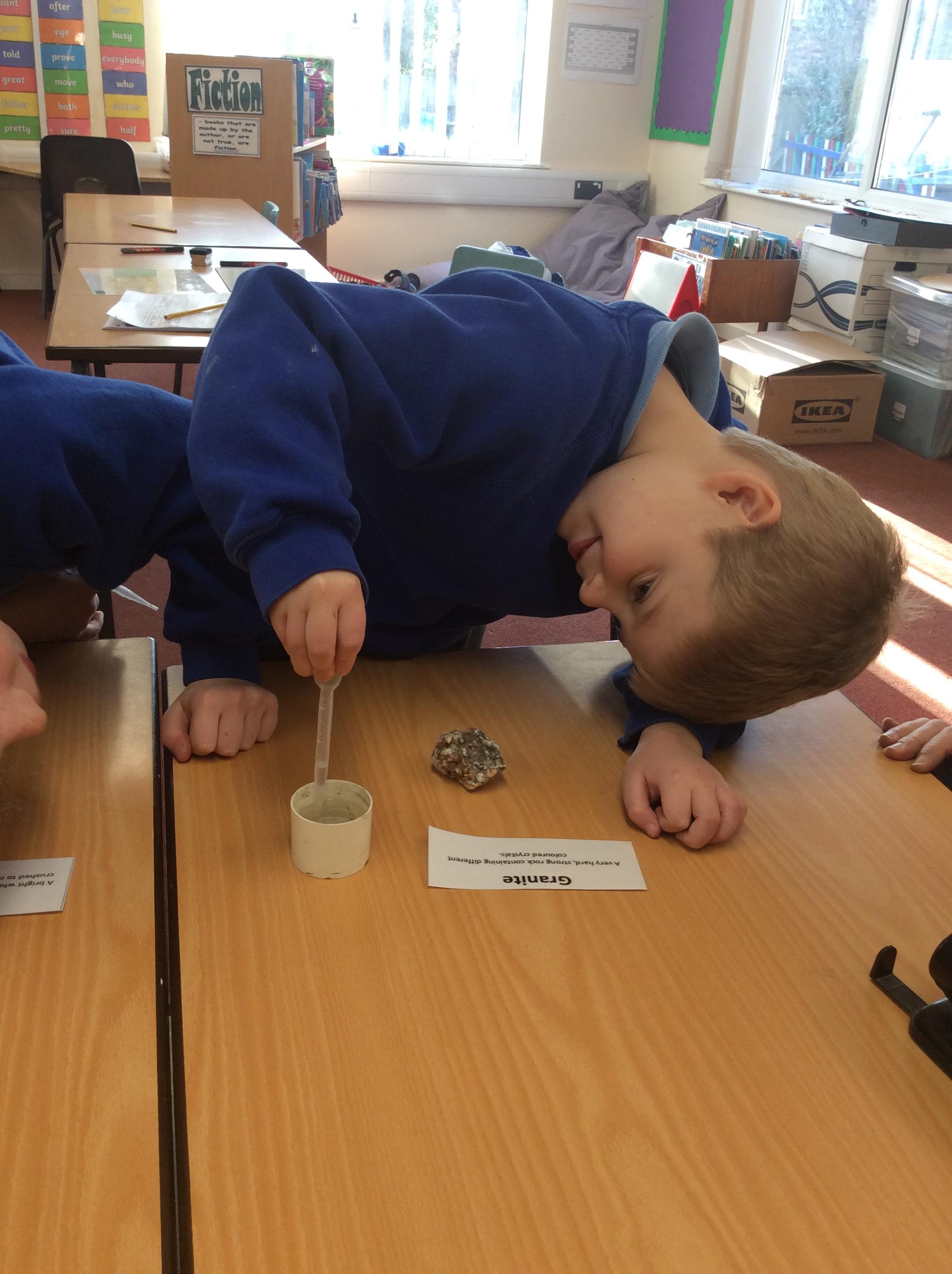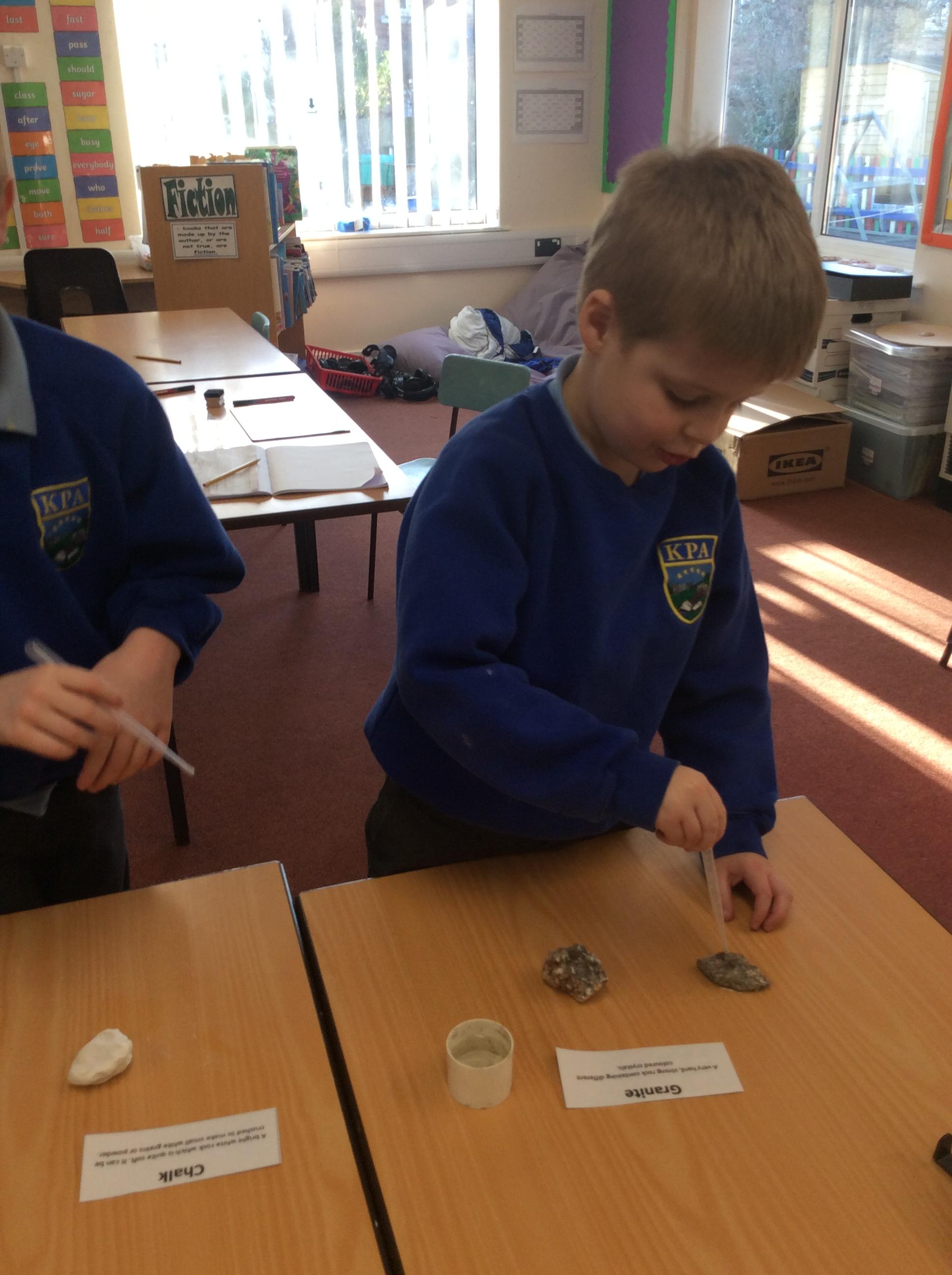 Year 3 completed an experiment about rocks this week in order to compare and group them by their properties. We tested how durable, how permeable, how dense and how soft/hard the stones were. Then we recorded our findings in a chart. YR2 have continued their learning about materials by finding objects that can be made of more than one material e.g. a ruler can be made from plastic or metal.