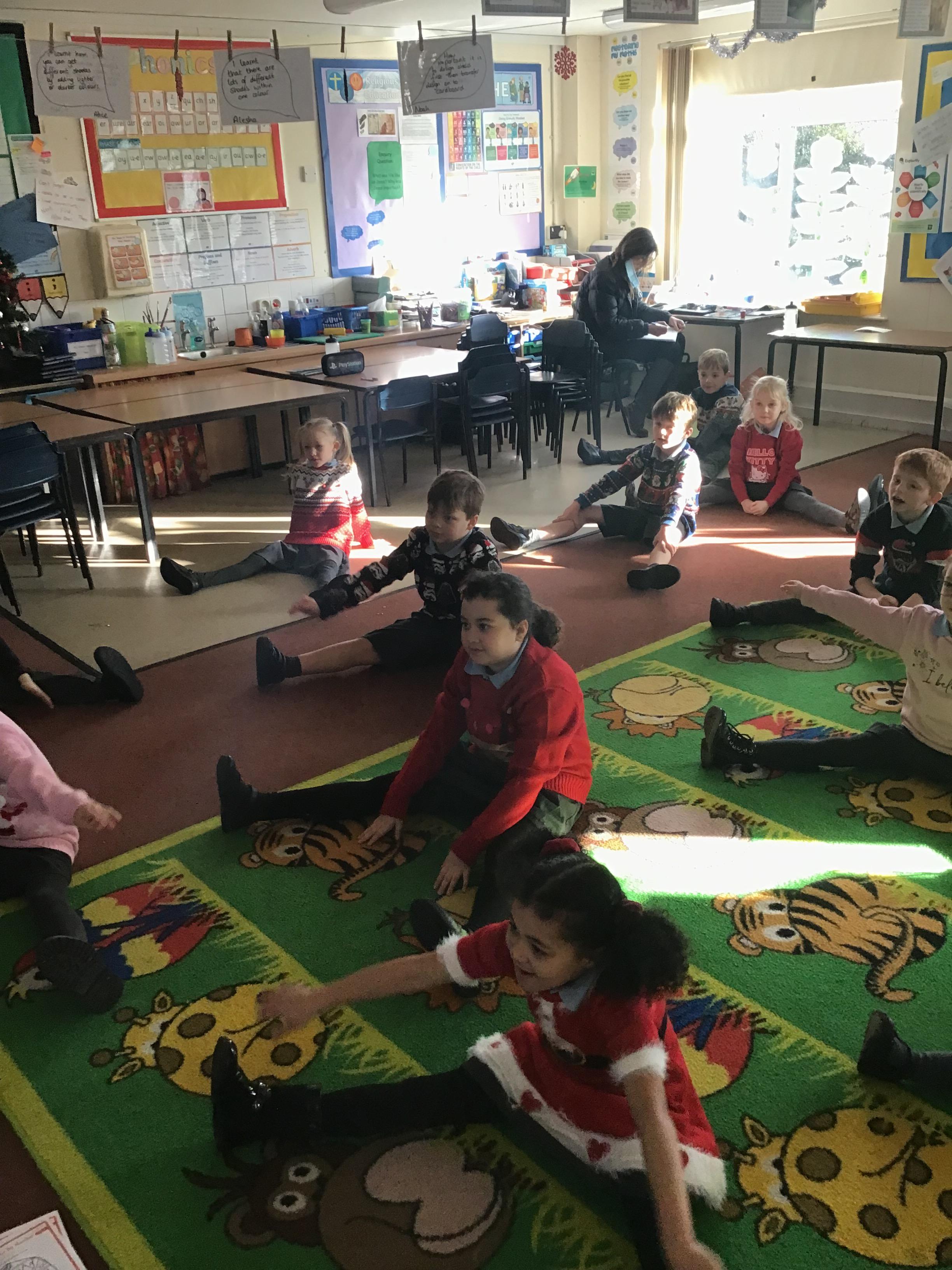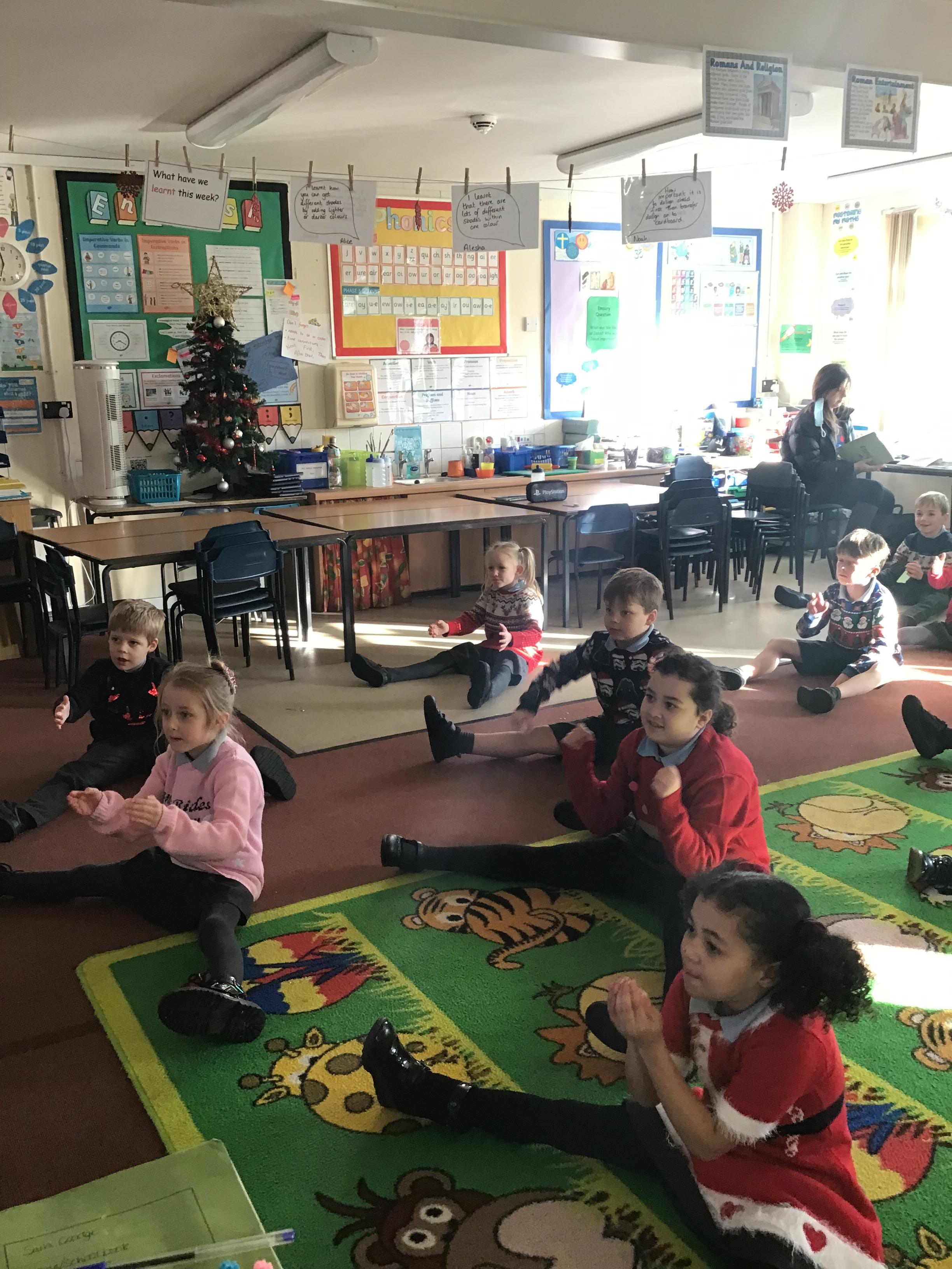 The Year 3 children continued their French learning by singing 'Heads, shoulders, knees and toes' in French with actions and we all enjoyed some Christmas cosmic yoga this afternoon.
