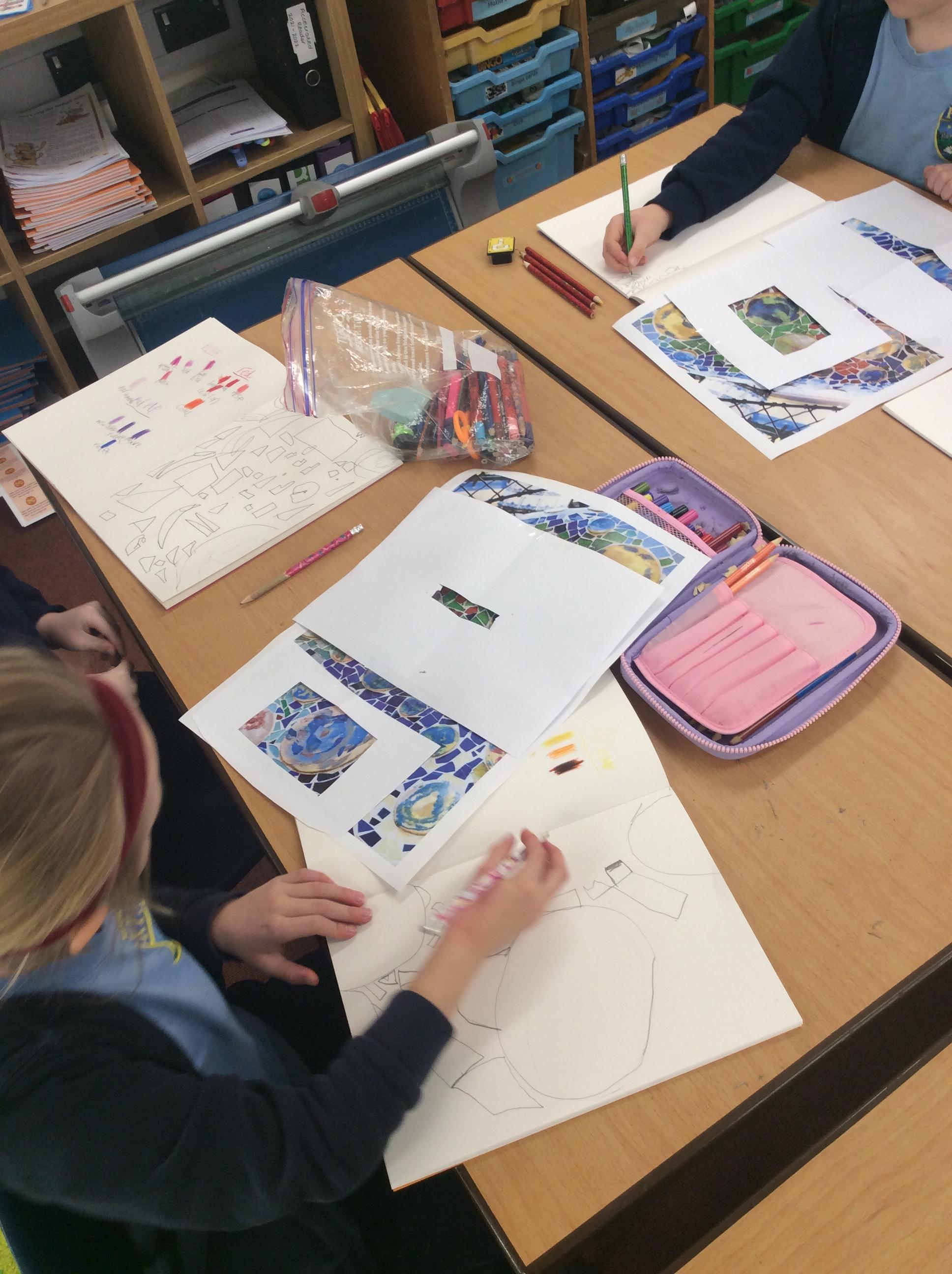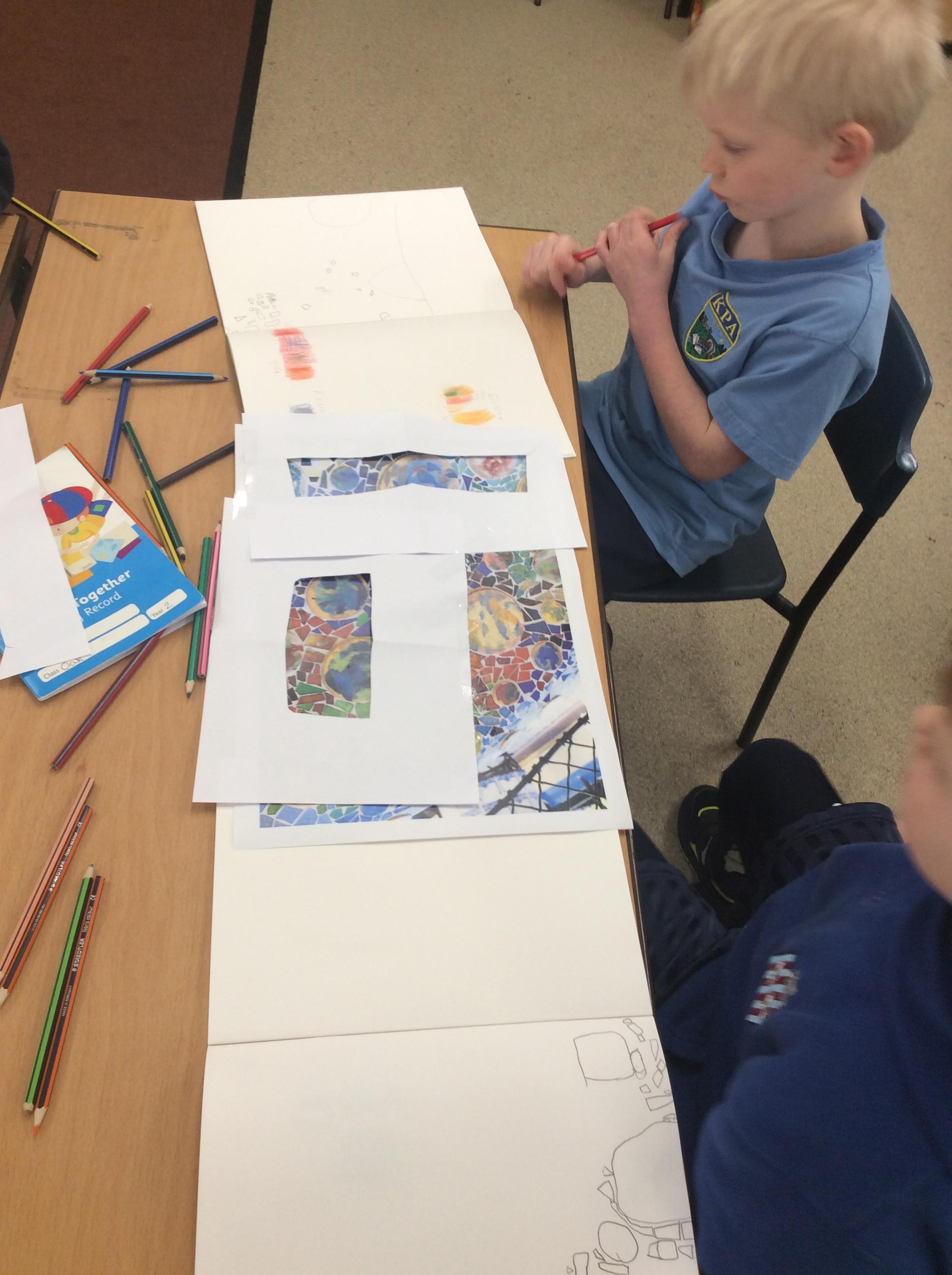 In Art this week, we have looked at a sculpture by Antoni Guardi. We spoke about the different colours that we could see and tried to use more accurate shade colours e.g. cyan or sky instead of just blue. We then mixed colouring pencils to create shades of primary or secondary colours and match them to our colour chart. Afterwards, we used a viewfinder to focus on a smaller section of the sculpture. We tried to copy the style into our sketch books and colour them in using our new knowledge of colour shades.