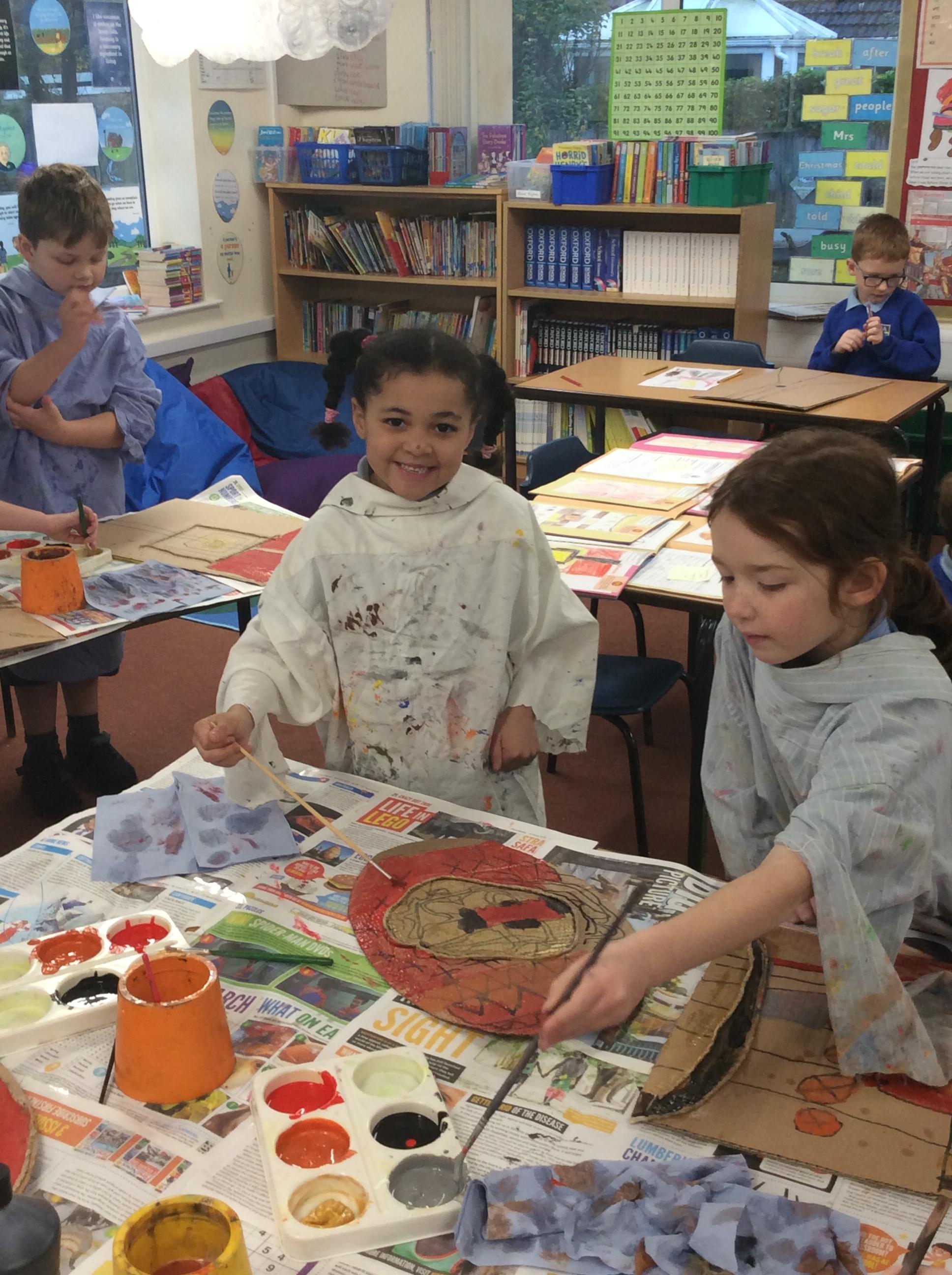 In Topic we have been working hard on our Roman shields. Some children needed to finish planning their shield and creating a design and by the end of the week, we all started to make our shields. Some children started to draw their designs on a cardboard cut out, some started gluing string on to create a 3D effect, and some children even managed to paint their shields. We will continue this next week!