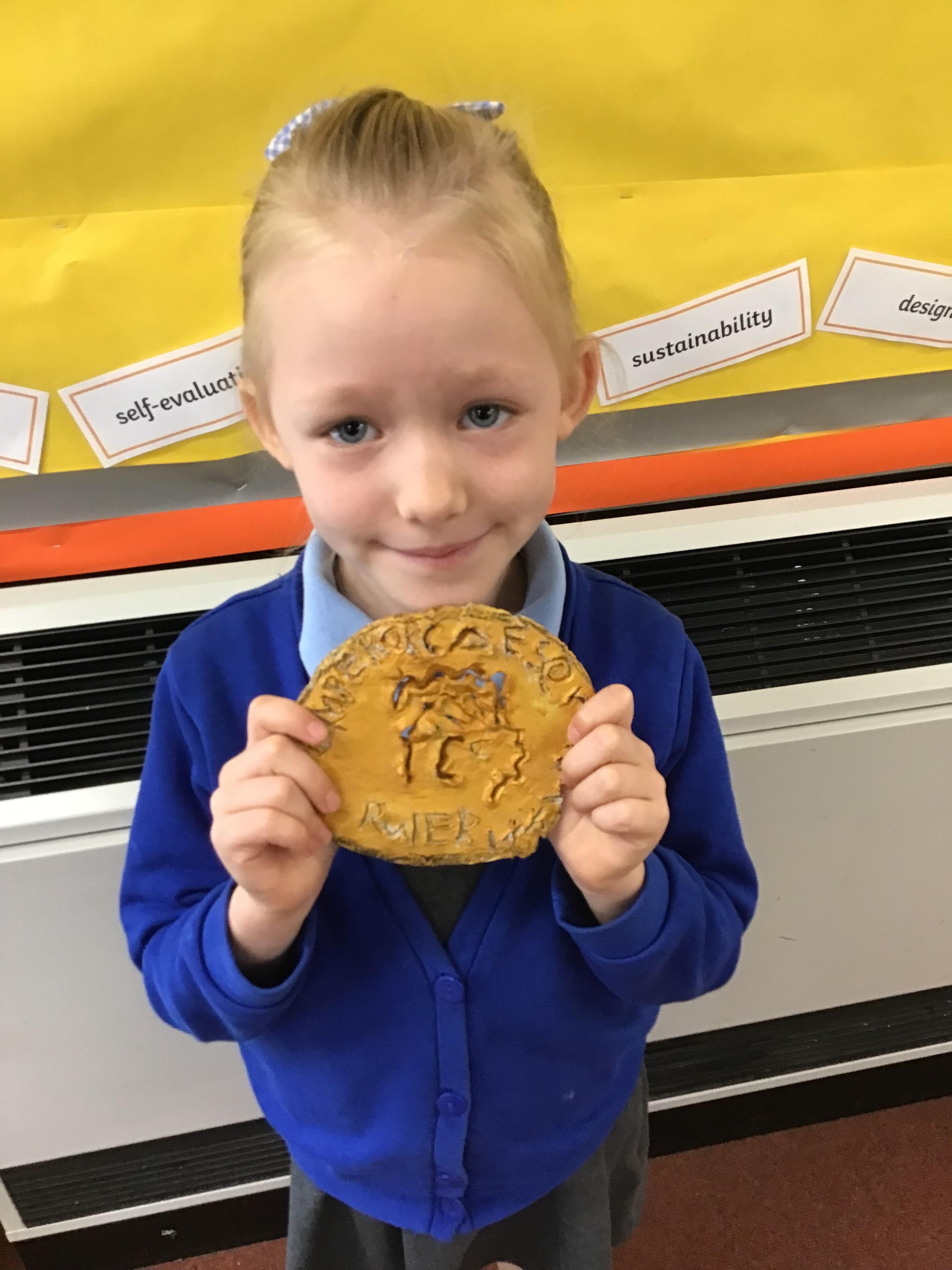 What a brilliant first full week we have had! This week we have been looking at The Secret Sky Garden, and exploring the issue of littering. We made posters to encourage people to stop littering, and did our first piece of exciting writing persuading people to stop and telling them why it is bad. We spent some time outside where we focused on our senses and we drew what we could hear, see and smell and how it felt to be outside. We also started to plan a gardening session to try to create a garden as beautiful as Funni's. In line with our topic of The Roman Empire, we designed and created our own clay coins based on the Roman coins that we saw. We then painted them to make them look old and realistic. We created roman mosaics in different patterns and thought about how long it would have taken the Romans to make such enormous pieces of work!
