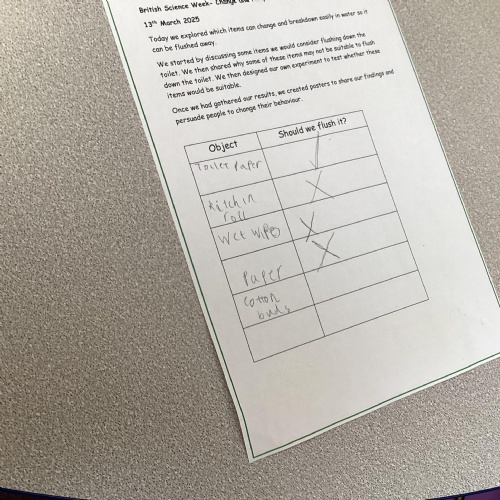 Should we flush it? We explored which items can change and breakdown easily in water so it can be flushed away.