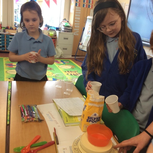 Dissolving Dilemma – In this activity, children tried to set up a fair test to see which type of sugar would dissolve in water fastest. We tested granulated sugar, caster sugar and sugar cubes in the same volume of water. The children had to practise observing over time skills too to watch and time how quickly each sugar dissolved in water.